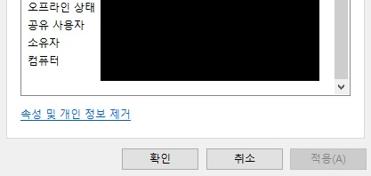 '자세히'탭의 맨 하단 확인버튼 바로 위를 보면 '속성 및 개인정보 제거'버튼이 있습니다.