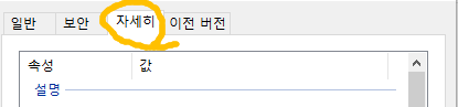 • '속성'에 들어가서 '자세히'탭으로 갑니다.