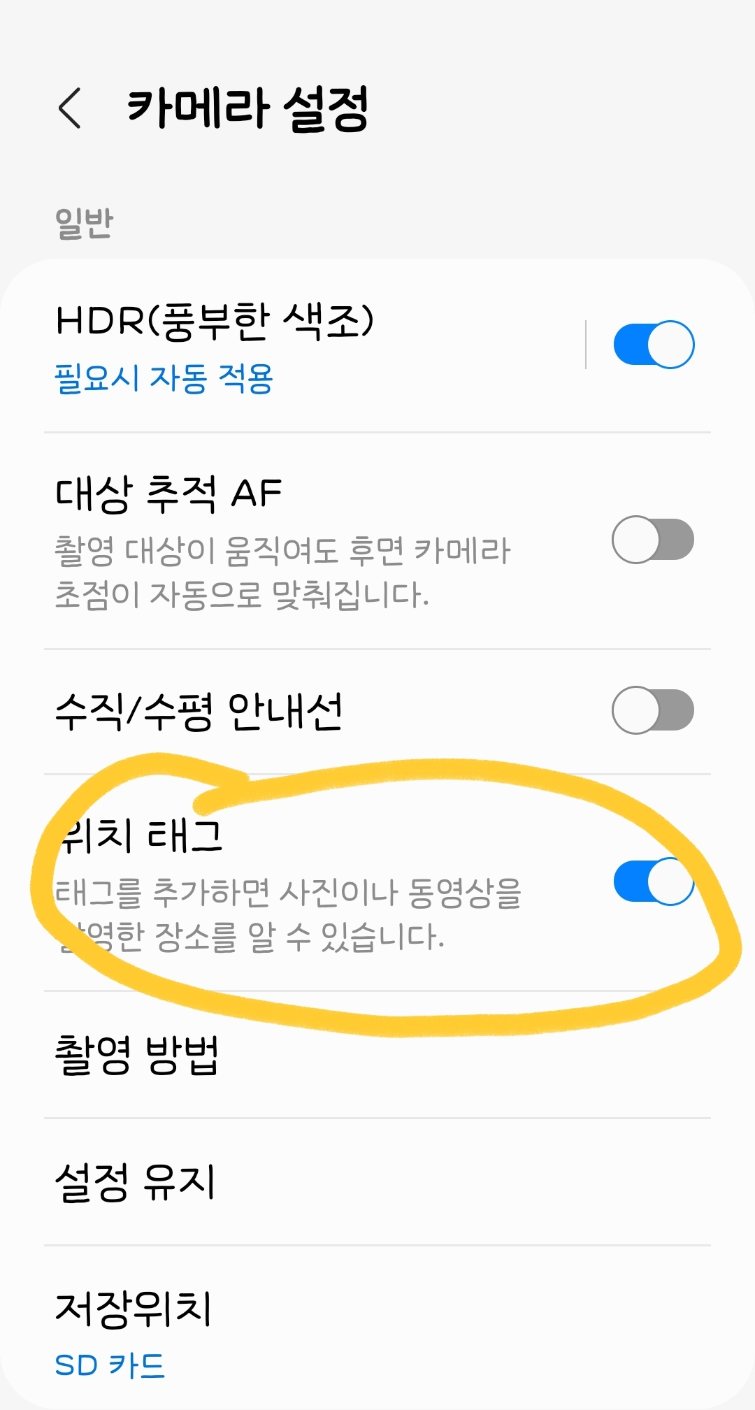 1. 사진 찍을때 위치정보 저장 끄는 법