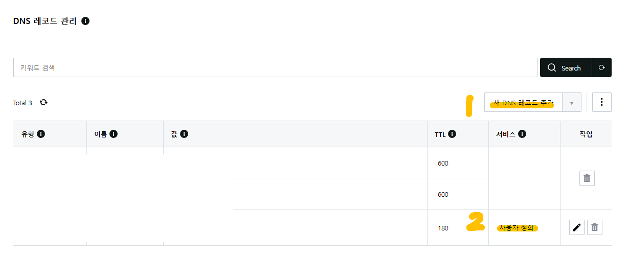 거기서 '새 DNS레코드 추가'를 눌러주고